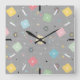 Este relógio de parede tem um padrão retrorreflector de explosões atômicas dispersas com quadrados e estrelas no estilo de meio século dos anos 50. Textura de linen em todo o design. Excelente para alguém que ama temas de 50 ou estilo moderno de meio século. Isso seria perfeito para uma decoração de tema retrô. Você pode fazer o padrão maior ou menor no relógio.