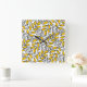 Relógio Quadrado Padrão de Folhas Amarelas Desenhadas à Mão
