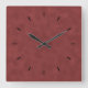 Relógio Quadrado Padrão de fundo em tons de vermelho escuro.