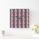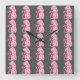 Relógio Quadrado Padrão de Gato Rosa no Fundo da Cinza