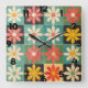 Relógio Quadrado Padrão de margarida retrô do meio século