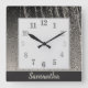 Relógio Quadrado Padrão de Stripe Metálico de Silver Streaks Modern