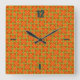Relógio Quadrado Padrão Geométrico Negrito Pista Verde Laranja Muro