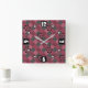 Relógio Quadrado Padrão geométrico rosa-cinza com flores