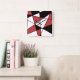 Relógio Quadrado Padrão Geométrico Vermelho Negro e Branco
