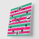 Relógio Quadrado Padrão horizontal listrado vermelho-verde