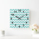 Relógio Quadrado Padrão Turquoise Aqua White Chevron Zig Zag