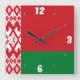 Sinalizador da Belarus Números de Sinalizador da Bielorrússia Relógio de Parede Vermelho Verde-Branco com a bandeira Belarus nas cores Verde, Lava Vermelho e Branco impressas o tempo todo. Os números de relógio na linda fonte "Peachy Keen" são escritos na cor branca com o Outline Negro. Belarus Square Wall Clock é o presente perfeito para o bielorrusso orgulhoso de sua herança.