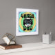 Pai gamer retrô com fones de ouvido e controle para o pai gamer.