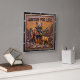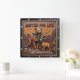 This dramatic square wall clock features a highly dimensional, close-up illustration of a brown panther (or leopard) and a white, happy goat standing side-by-side. The entire design is rendered in muted brown, tan, and dark leather-like tones, strongly suggesting a deep sculpted relief or Sculpted Leather Look. The panther has detailed spots and is positioned on the left, while the goat is on the right, smiling with large curved horns. They are surrounded by an elaborate circular wreath of gnarled, dark tree branches and thick leaves. The background is a dark, heavily textured leather panel. The large, three-dimensional embossed text "BESTIES FOR LIFE" is carved across the top center in a bold, golden serif font. The clock face features a simple clock face border with large, white, numbered tick marks (1 to 12) integrated into the outer frame. The artwork is surrounded by a thick, dark brown decorative border that resembles a black wood frame.