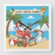 Relógio Quadrado Papais noeis e boneco de neve na praia