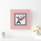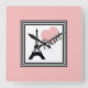 Ilustração Paris com Torre Eiffel e decoração cardíaca em quadrados brancos e pretos em fundo rosa