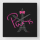 Relógio Quadrado PARIS, Torre Eiffel com Arco rosa
