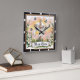 Este inspirador relógio de parede quadrado apresenta uma cruz de madeira enrolado com um pano branco, colocado contra um sol radiante e rodeado por lírios brancos vibrantes e delicadas borboletas azuis. Uma faixa com "Ele é Risen" em uma escrita elegante completa essa descrição serena e esperançosa de Páscoa e ressurreição.