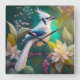Relógio Quadrado Pássaro Branca de Teal Wing Jay Fantasy