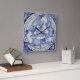 Meu trabalho de arte original, azul e azulejo de coelho branco, com copyrights, mostra três coelhos compartilhando três orelhas - um antigo motivo. O texto da fronteira diz, "Coelhos três e ouvidos como poucos, mas cada coelho tem seus dois." Flores estilizadas e pássaros enfeitam os cantos. Perfeito para a sua decoração azul e branca.