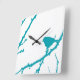 Relógio Quadrado Pássaro em uma ramificação Silhouette_Turquoise