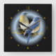 Relógio Quadrado Pássaros azuis e palha ~ Pergaminho Musical Dourad