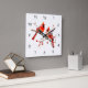 Relógio Quadrado Pássaros Cardinais Vermelhos no Ramo de Árvore Hol