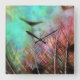 As bolhas de pastel de aqua, turquesa, azul e rosa e roxo são um pano de fundo para estas pintas de pavão sabiosas