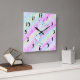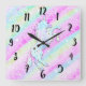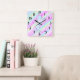 Relógio Quadrado Pastel Rainbow Diamantes & Estrelas - Unicórnio Má