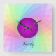 Relógio Quadrado Pastel Rainbow Purple Twirl Name Personalizado