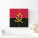 Angola Flag Red Black Yellow Numbers Patriotic Square Wall Clock com a bandeira Angola em Red NCS, Sunglow Yellow e Black cores impressas o tempo todo. Os números de relógio na bela fonte "Peachy Keen" são escritos como o contorno na cor amarela com as cores do sinalizador visíveis através deles. Angola Square Wall Clock é o presente perfeito para os angolanos orgulhosos da sua herança. A bandeira nacional de Angola entrou em uso quando Angola ganhou a independência no dia 11 de novembro de 1975. É dividido horizontalmente numa metade vermelha superior e numa metade preta inferior, com um emblema a repousar no centro. Apresenta uma roda amarela de meia engrenagem atravessada por um facão e coroada com uma estrela. A Bandeira Nacional da República de Angola tem duas bandas horizontais de vermelho e preto com o emblema Machete e Gear em ouro no centro constituído por uma estrela de cinco pontas dentro de uma roda de meia-engrenagem atravessada por um facão (como o martelo e a foice usados na bandeira soviética). Tal como delineado na Constituição de Angola, a metade vermelha da bandeira significa derramamento de sangue - durante o período colonial de Angola, a luta pela independência e em defesa do país. A metade negra simboliza a África. No emblema central, a engrenagem representa trabalhadores industriais e produção, o facão representa camponeses, produção agrícola e luta armada e a estrela, em forma de estrela vermelha, simboliza solidariedade e progresso internacionais. A cor amarela do emblema simboliza a riqueza do país. A Constituição de 1975 descreveu a estripa vermelha como simbolizando o derramamento de sangue durante o período colonial, a libertação nacional e uma revolução - e a referência à revolução foi substituída por "defesa do país" na Constituição de 1992. Em outras mudanças de redação entre as versões de 1975 e 1992, o facão foi mudado de um símbolo de "internacionalismo" para "solidariedade internacional", e as referências à "classe trabalhadora" e à "classe camponesa" foram substituídas por "trabalhadores" e "camponeses". Fonte: Wikipedia, https://en.wikipedia.org/wiki/Flag_of_Angola