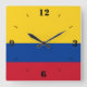 Colombiana National Flag Patriotic Square Wall Clock com a bandeira do país nas cores nacionais impressas o tempo todo. Os números de relógio nas cores correspondentes são colocados sobre as cores do sinalizador. Este design deslumbrante é o presente perfeito e a peça do excelente na parede. © PaísesDoMundo