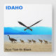 Os gansos de Cute Canada (Branta canadensis) são escoltados ao longo da costa do lago Pend Oreille, em Idaho norte, por um adulto. O texto personalizável que lê "IDAHO" também é exibido. Personalize ainda mais adicionando seu próprio texto adicional. Esta é uma cena típica no Parque City Beach, em Sandpoint.