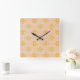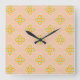 Hexagonal floral pattern with blue-green centers and orange outlines on a peach background. White lines connect the shapes, creating a geometric grid.