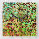 Relógio Quadrado Pequenos quadrados ou azulejos verdes e castanhos