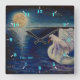 Relógio Quadrado Personalize o Cisne no lago em Moon cheio
