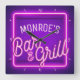 Relógio Quadrado Personalize seu nome Faux Neon Sign Grill do Bar R