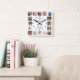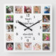 Relógio Quadrado Personalized 16 Photo Collage Family Quote White