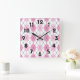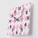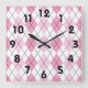 Relógio Quadrado Pink and White Argyle Wall Clock
