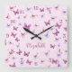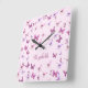 Relógio Quadrado Pink Butterflies Pattern Custom Name
