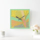 Relógio Quadrado Pink de borboleta Dourada abstrato