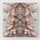 Relógio Quadrado Pink Ornate Pearl and Floral Wall Clock