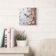 Relógio Quadrado Pink Ornate Pearl and Floral Wall Clock