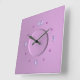 Um bonito relógio cor-de-rosa pastel com números azuis claros.Este relógio simplista está disponível em formas quadradas e redondas. Um excelente de um quarto de meninas.
