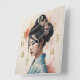 Relógio Quadrado Pintura Por Aquarela Lindas Flores Asiáticas
