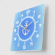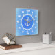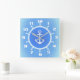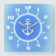 Relógio Quadrado Pó, âncora e roda náutica branca e azul