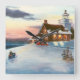 De uma pintura original acrílica de Brenda Thour, de Sherwood Lighthouse em Wisconsin, durante um belo pôr do sol em uma neve cobria o dia dos Invernos e duas pessoas se movendo em neve. Copyright de Brenda Thour 2004.