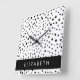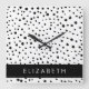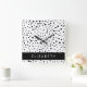 Relógio Quadrado Pontos Dalmáticos, Pontos, Preto e Branco, Seu Nom