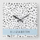 Relógio Quadrado Pontos Dalmáticos, Pontos, Preto e Branco, Seu Nom