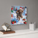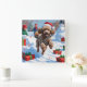 Relógio Quadrado Poodle correndo em neve com chapéu de Natal