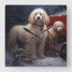 Relógio Quadrado Poodle Snowy Sleigh Decoração de Natal