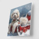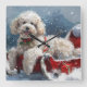 Relógio Quadrado Poodô Cachorro Natal Festivo