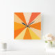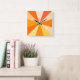Este relógio quadrado de pop de arte, inspirado na década de 60, tem raios laranja psicodélicos / explosões de sol a disparar num padrão geométrico. Há doze raios para marcar o tempo - não há necessidade de números neste relógio ultrassensível, minimalista e supermod. É groovy, querida.