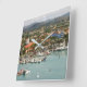 Sonho de uma viagem aos trópicos? Seu destino ideal é mais fácil visualizar quando você pendura este pulso de disparo de Aruba em sua parede. Featured é uma cena de Oranjestad, ou uma palmeira alinhou o porto enchido com os barcos de prazer, no porto popular do cruzeiro do ponto de chamada e de férias.